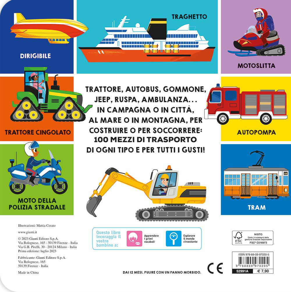 In campagna o in città, al mare o in montagna, per costruire o per soccorrere: ecco ben 100 mezzi di trasporto, dai più semplici ai più complessi, dai più piccoli ai più grandi, proprio per tutti i gusti!