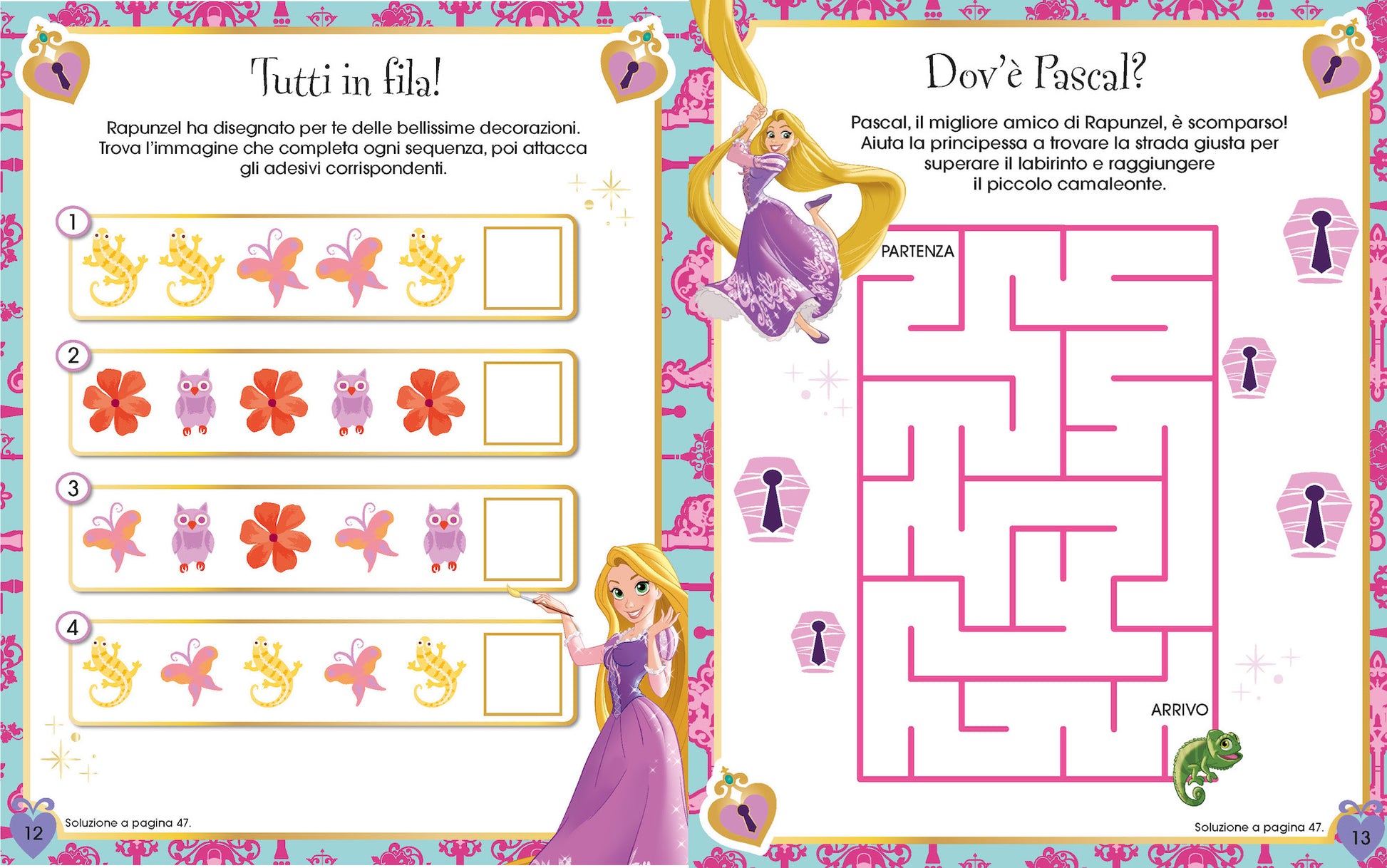 Un albo attivo dedicato alle Principesse Disney e alle loro avventure, con tanti giochi, labirinti, cruciverba, codici, disegni da colorare, trova le differenze e più di 1000 adesivi da utilizzare per completare le attività.