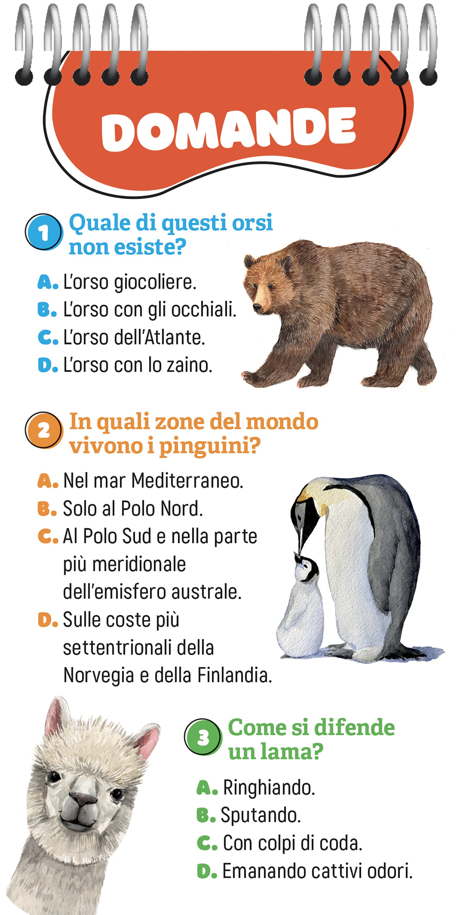 Dall’elefante al colibrì, dai serpenti alle farfalle, tantissime domande per scoprire le notizie più curiose sul mondo degli animali.
