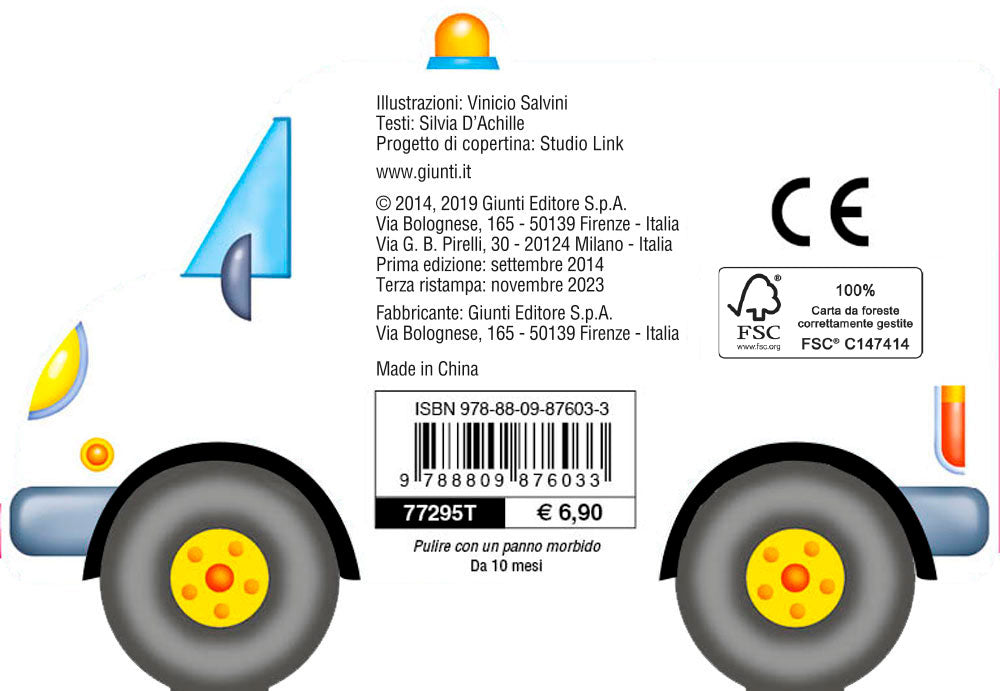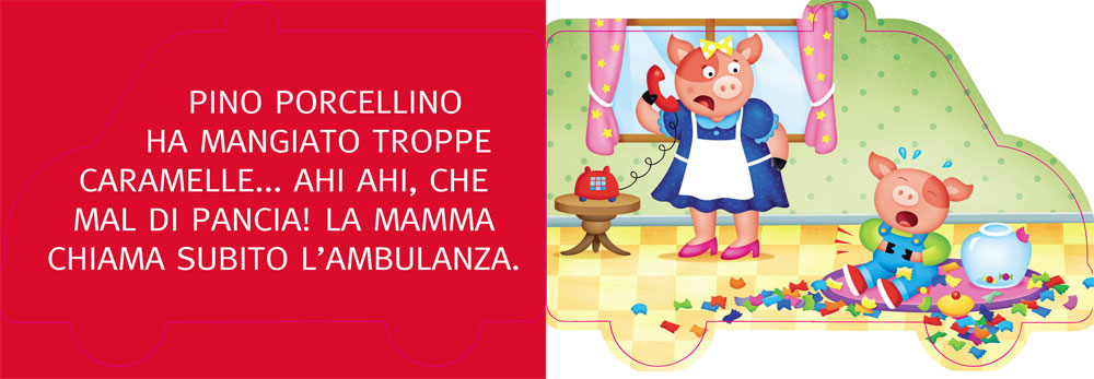 Una collana di libri sagomati… con le ruote! Leggi le storie, scopri come funzionano i mezzi ti trasporto e gioca con tutte le tue macchinine! Neno neno... Ecco la sirena dell'ambulanza che corre in ospedale!