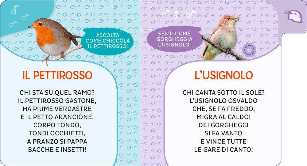 Libri piccoli e maneggevoli, con splendide foto a colori, una simpatica rubricatura, tante filastrocche per conoscere gli animali e 6 suoni da ascoltare! Buona lettura... e buon ascolto!