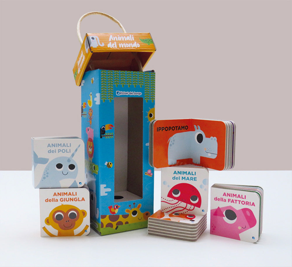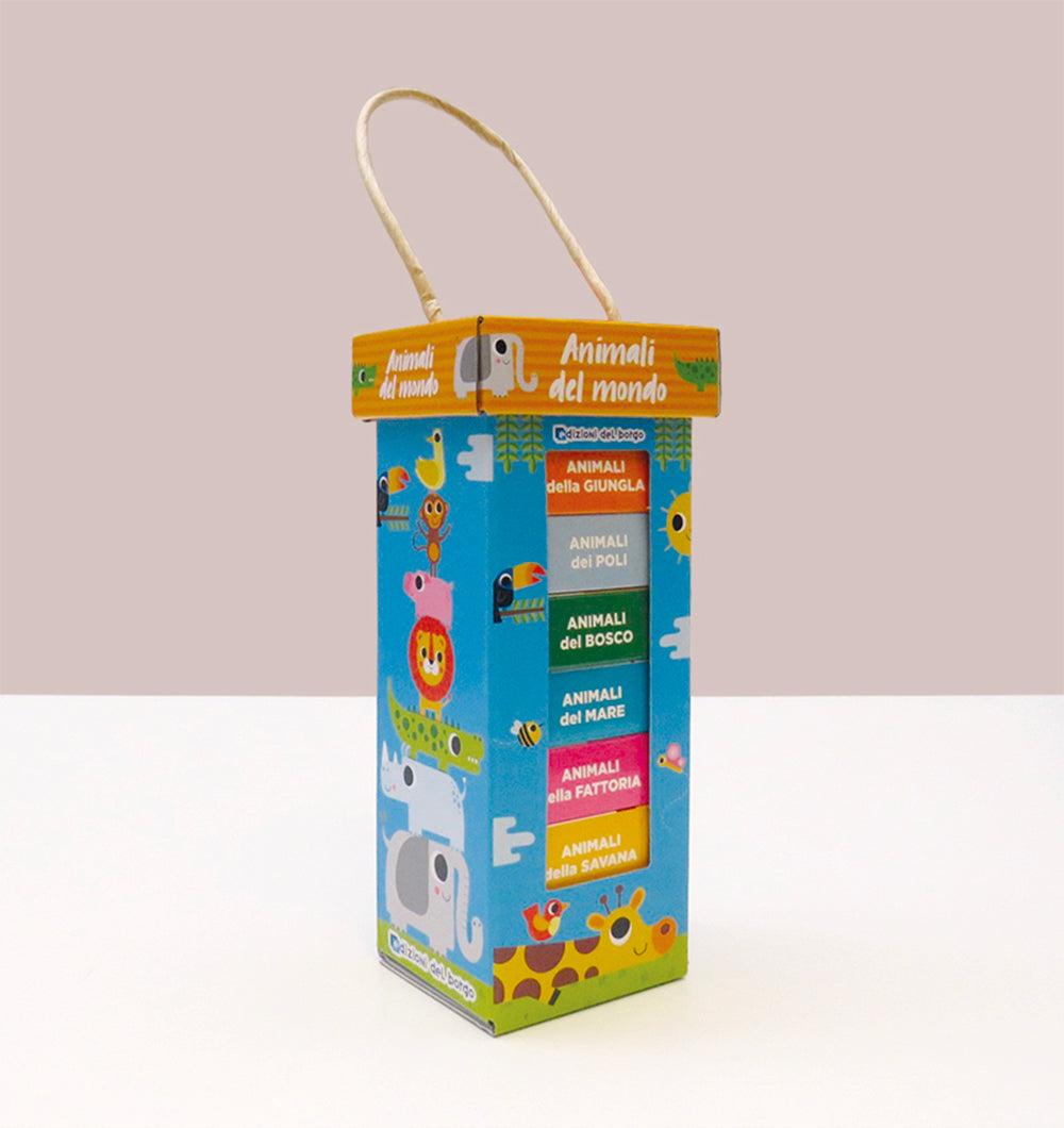 Un pratico contenitore con sei mini libri per scoprire il mondo degli animali. Un viaggio coloratissimo e magico attraverso le ambientazioni più familiari, come la fattoria, fino a quelle più lontane e misteriose,