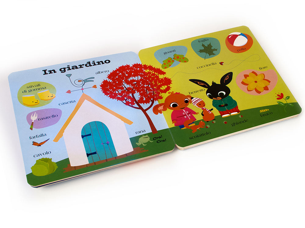 Impara tante paroline insieme a Bing e ai suoi amici! Un libro dedicato ai più piccoli con solide pagine di cartone e colori vivaci per esercitarsi con tante nuove parole insieme al loro coniglietto preferito!