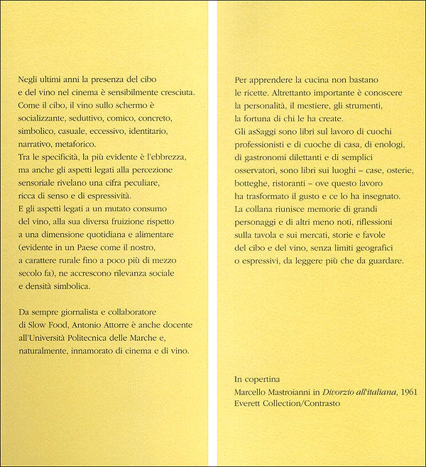 Negli ultimi anni la presenza del cibo e del vino nel cinema è sensibilmente cresciuta. Come il cibo, il vino sullo schermo è socializzante, seduttivo, comico, concreto, simbolico, casuale, eccessivo, identitario, narrativo, metaforico. Tra le specificità, la più evidente è l'ebbrezza, ma anche gli aspetti legati alla percezione sensoriale rivelano una cifra peculiare, ricca di senso e di espressività. E gli aspetti legati a un mutato consumo del vino, alla sua diversa fruizione rispetto a una dimensione quotidiana e alimentare (evidente in un Paese come il nostro, a carattere rurale fino a poco più di mezzo secolo fa), ne accrescono rilevanza sociale e densità simbolica. Dopo una classificazione dei filoni tematici e degli stereotipi attraverso i quali si può leggere la presenza del vino sullo schermo, ''Château Lumière'' racconta la fortuna del vino al cinema nelle diverse epoche e nei diversi Paesi, per offrire infine un excursus su film nei quali il vino è presente come elemento significativo (come connotazione sociologica, in funzione narrativa, come protagonista ecc.) o anche come semplice ''figurante'' (ma comunque interessante spia del prestigio o del ruolo che il vino riveste, in quel periodo, nell'immaginario collettivo). In appendice, una puntuale bibliografia e una ricca filmografia.