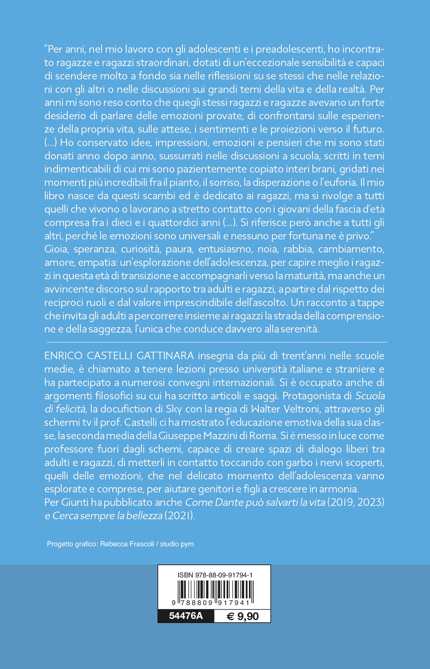“Per anni, nel mio lavoro con gli adolescenti e i preadolescenti, ho incontrato ragazze e ragazzi straordinari, dotati di un’eccezionale sensibilità e capaci di scendere molto a fondo sia nelle riflessioni su se stessi che nelle relazioni con gli altri o nelle discussioni sui grandi temi della vita e della realtà. Per anni mi sono reso conto che quegli stessi ragazzi e ragazze avevano un forte desiderio di parlare delle emozioni provate, di confrontarsi sulle esperienze della propria vita, sulle attese, i sentimenti e le proiezioni verso il futuro. (...) Ho conservato idee, impressioni, emozioni e pensieri che mi sono stati donati anno dopo anno, sussurrati nelle discussioni a scuola, scritti in temi indimenticabili di cui mi sono pazientemente copiato interi brani, gridati nei momenti più incredibili fra il pianto, il sorriso, la disperazione o l’euforia. Il mio libro nasce da questi scambi ed è dedicato ai ragazzi, ma si rivolge a tutti quelli che vivono o lavorano a stretto contatto con i giovani della fascia d’età compresa fra i dieci e i quattordici anni (...). Si riferisce però anche a tutti gli altri, perché le emozioni sono universali e nessuno per fortuna ne è privo.” Un’esplorazione dell’adolescenza in dieci lezioni, per capire meglio i ragazzi in questa età di transizione e accompagnarli verso la maturità, ma anche un avvincente discorso sul rapporto che gli adulti possono instaurare con loro a partire dal rispetto dei reciproci ruoli e dal valore imprescindibile dell’ascolto. Un racconto a tappe per percorrere insieme la strada della comprensione e della saggezza, l’unica che conduce davvero alla serenità.