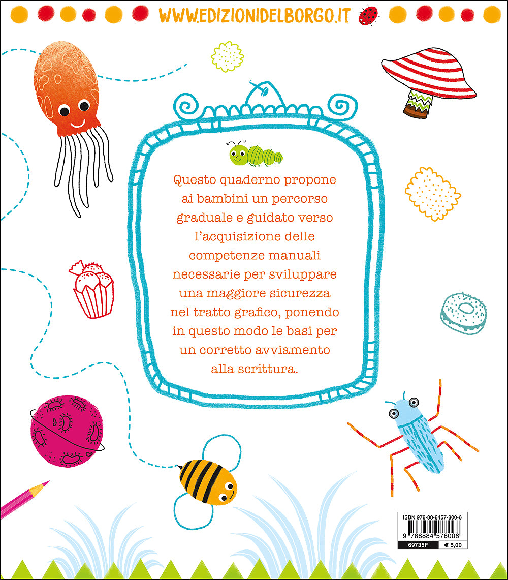 ''Disegno e lascio il segno'' propone ai bambini un percorso graduale e guidato verso l'acquisizione delle competenze manuali necessarie per sviluppare una maggiore sicurezza nel tratto grafico, ponendo in questo modo le basi per un corretto avviamento alla scrittura.