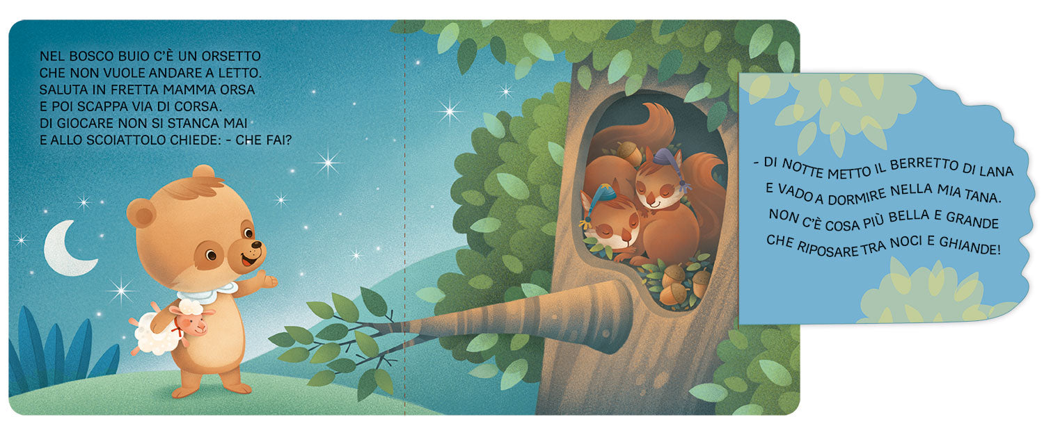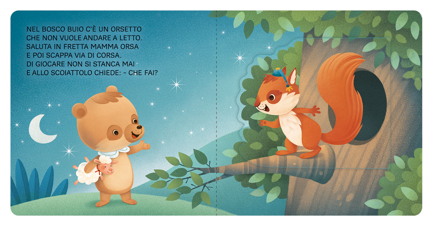 cui giocare. Scoprirà che gli altri animali hanno mille cose da fare anche di notte... Per fortuna a un certo punto il sonno arriverà e correrà nella sua tana per fare la nanna!