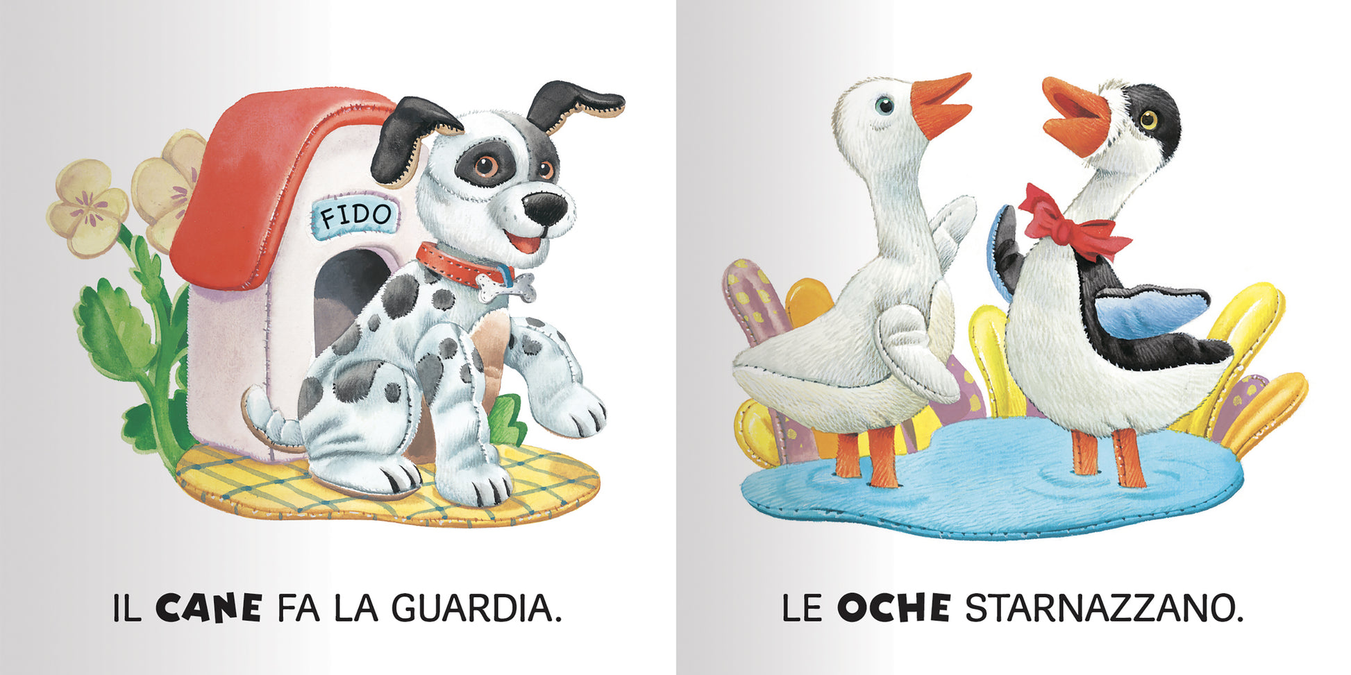 Le illustrazioni trasformano ogni animale in un tenero peluche.