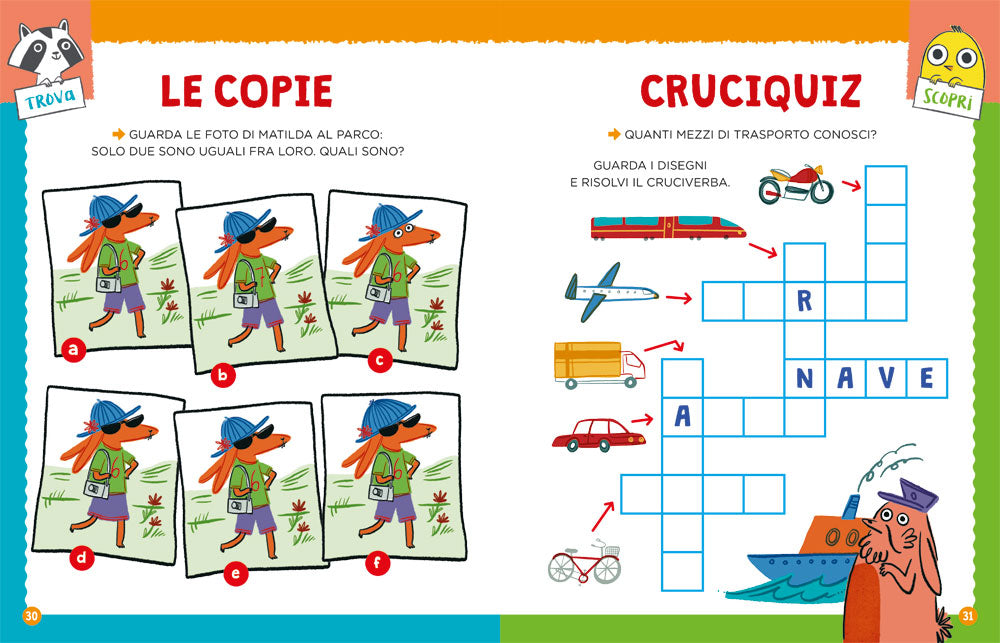 Labirinti, cruciverba illustrati, disegni da colorare, parole da trovare, giochi di logica e di precalcolo... tante attività per passare il tempo in modo intelligente.