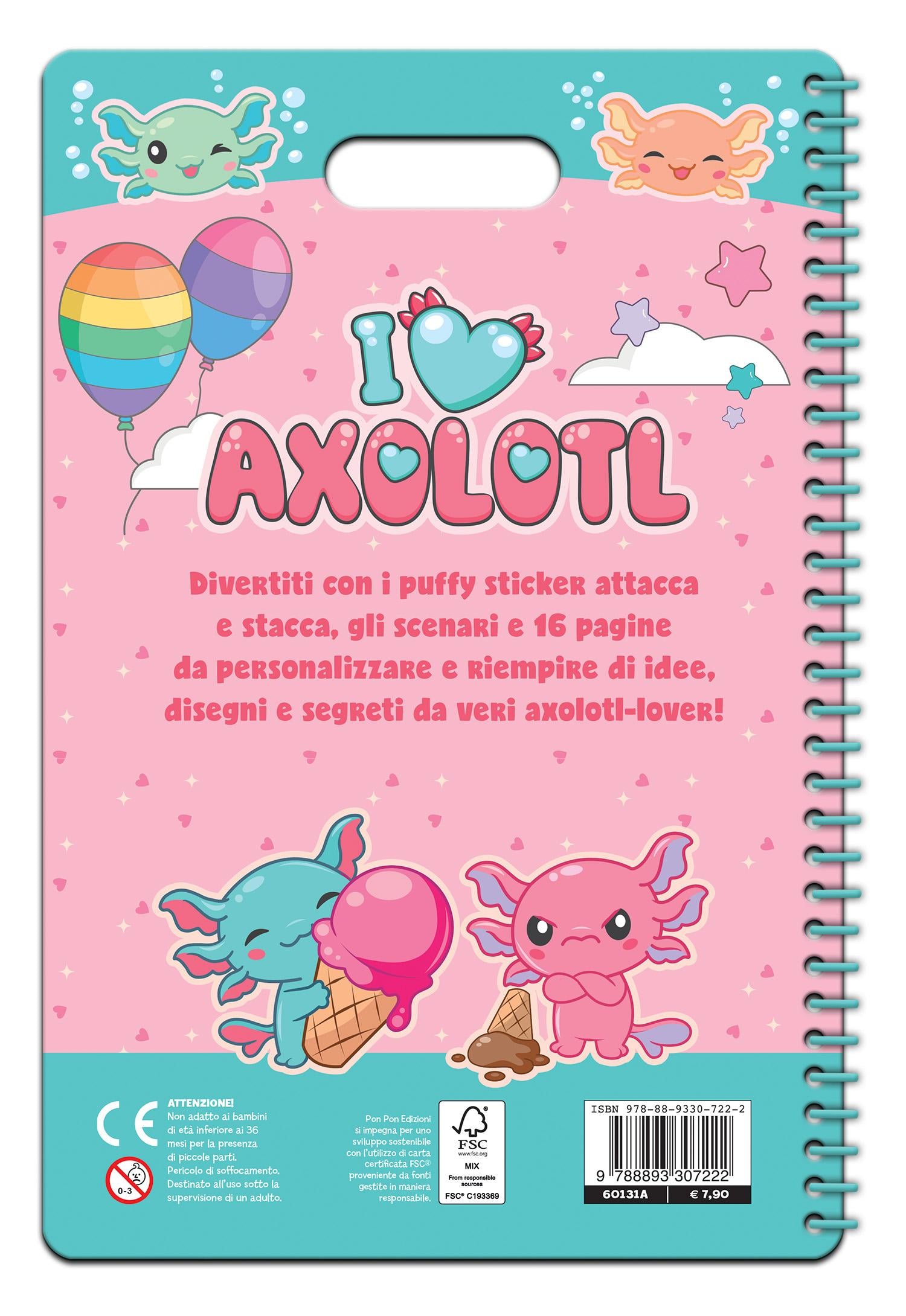 I Love Axolotl. Puffy sticker. I love scrapbooks
