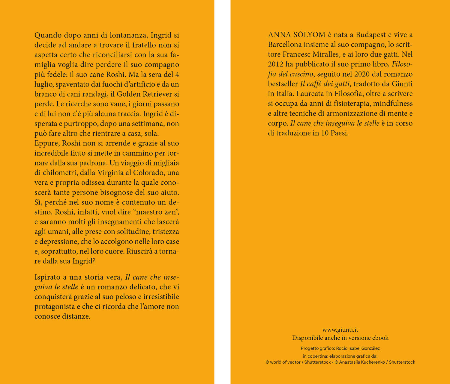Quando dopo anni di lontananza, Ingrid si decide ad andare a trovare il fratello non si aspetta certo che riconciliarsi con la sua fa- miglia voglia dire perdere il suo compagno più fedele: il suo cane Roshi. Ma la sera del 4 luglio, spaventato dai fuochi d’artificio e da un branco di cani randagi, il Golden Retriever si perde. Le ricerche sono vane, i giorni passano e di lui non c’è più alcuna traccia. Ingrid è disperata e purtroppo, dopo una settimana, non può fare altro che rientrare a casa, sola. Eppure, Roshi non si arrende e grazie al suo incredibile fiuto si mette in cammino per tornare dalla sua padrona. Un viaggio di migliaia di chilometri, dalla Virginia al Colorado, una vera e propria odissea durante la quale conoscerà tante persone bisognose del suo aiuto. Sì, perché nel suo nome è contenuto un destino. Roshi, infatti, vuol dire “maestro zen”, e saranno molti gli insegnamenti che lascerà agli umani, alle prese con solitudine, tristezza e depressione, che lo accolgono nelle loro case e, soprattutto, nel loro cuore. Riuscirà a tornare dalla sua Ingrid? Ispirato a una storia vera, Il cane che inseguiva le stelle è un romanzo delicato, che vi conquisterà grazie al suo peloso e irresistibile protagonista e che ci ricorda che l’amore non conosce distanze.