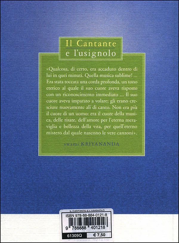 Un cantante famoso e molto amato dai suoi concittadini una sera, inaspettatamente, sbaglia un ''la''. Per quanto provi, in seguito, a riaccordare la sua voce, quella nota resta stonata. Decide allora di ritirarsi e organizza una festa d'addio, alla quale invita tutto il paese. All'improvviso, però, è colto da profonda tristezza ed esce, solo, sulla terrazza. Là sente un usignolo, che lo invita a seguirlo. Dopo una breve esitazione, scavalca con un salto il parapetto e scompare nella foresta immersa nella notte... Con questo salto nel buio entriamo nel cuore di una storia insolita e avvincente, che ci conquista fin dalle prime righe con il suo stile brillante e i suoi molteplici livelli di lettura. Possiamo goderla come una fiaba allegra e fantastica e lasciarci trasportare in un mondo popolato da creature piumate di ogni forma e personalità, che ci intrattengono con le loro disquisizioni sulla vita e sul canto. O possiamo scegliere di esplorarne la dimensione interiore e più profonda, per scoprire il segreto della musica, dell'arte, della vita, della vera felicità. L'autore stesso, con le sue ''Considerazioni'' a fine libro, si offre come guida su questo sentiero. Scopriamo allora che il Cantante è quel qualcosa in ognuno di noi che va al di là del nome e della personalità; che il suo viaggio nella foresta è il viaggio della nostra anima verso le vette più alte della libertà interiore; che la sua guarigione è anche la nostra; e che anche noi possiamo diventare puri canali per l'eterno Canto Divino e cantare la nota giusta nel grande coro della vita. Titolo originale: ''The Singer and the Nightingale'' (2003).