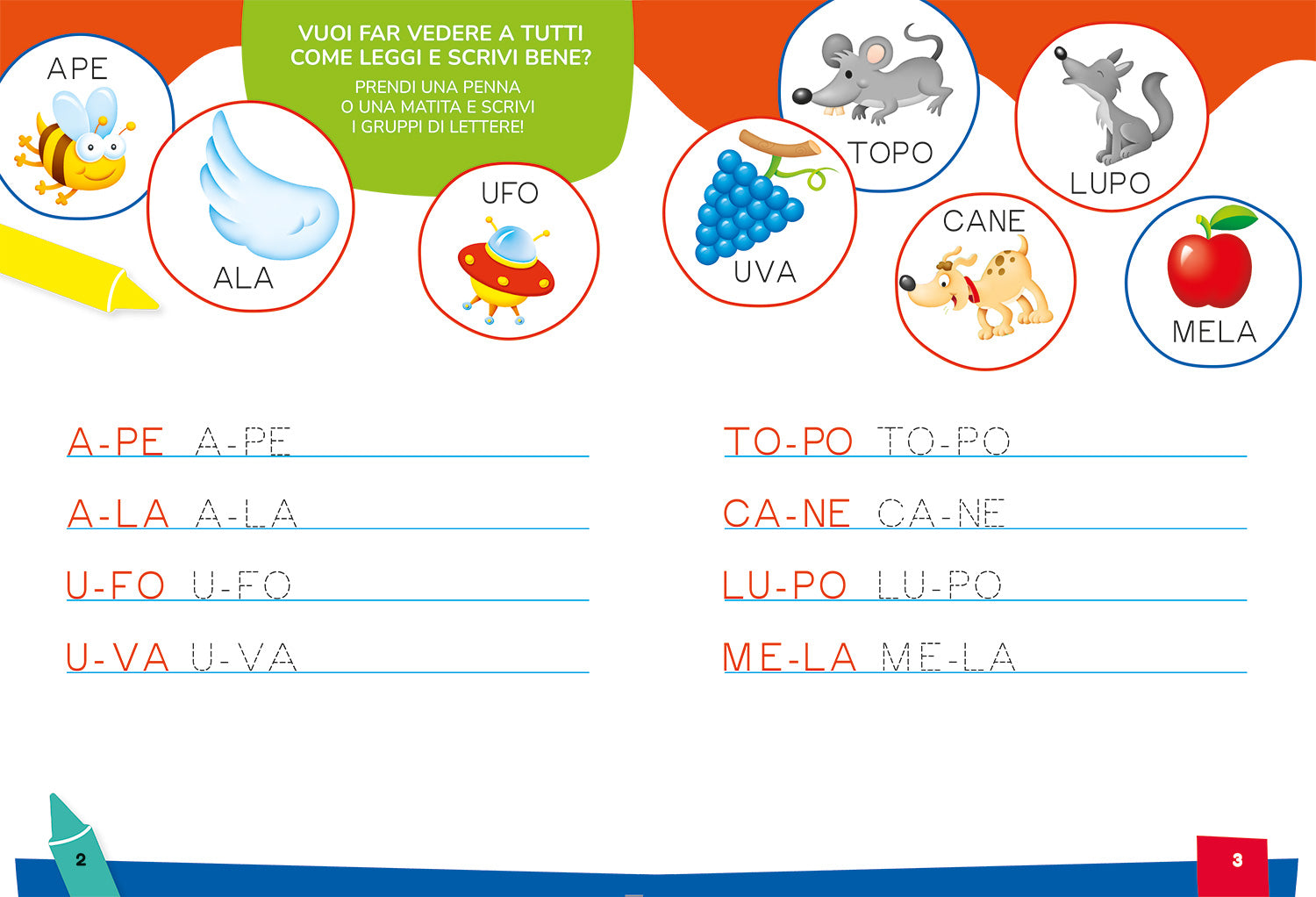 Un libro per imparare a scrivere divertendosi! Gli allegri quaderni di scrittura, con cui i più piccoli impareranno a tenere in mano la penna e ad esercitarsi con grande divertimento.