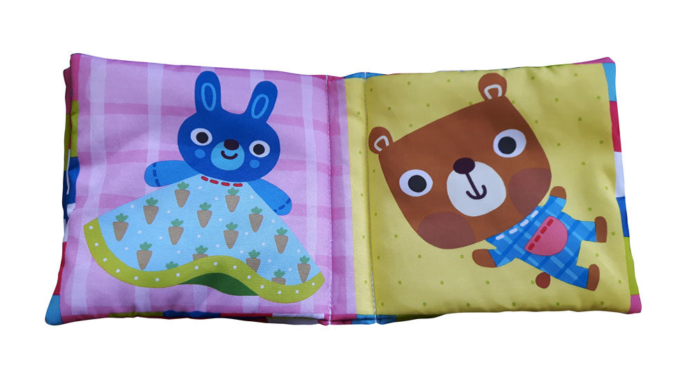 Libri senza testo con morbidissime pagine di stoffa imbottita e illustrazioni semplici e colorate, dalle linee sintetiche ma estremamente tenere… sono i libri di stoffa Dami! Un titolo dedicato alla vita quotidiana del neonato, fatta di ciucci, sonaglini, visi familiari e sorridenti!