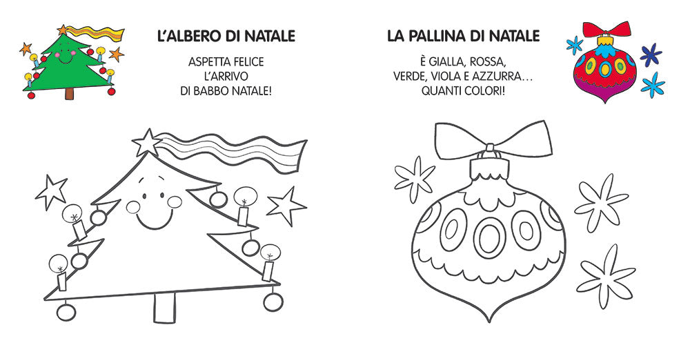 L'albero decorato, Babbo Natale, il pupazzo di neve, i regali e tante altre bellissime immagini per accendere di magia il Natale. Un albo nuovissimo e divertente con illustrazioni semplici e sintetiche studiate appositamente per i più piccoli e per aiutarli a sviluppare la loro creatività!