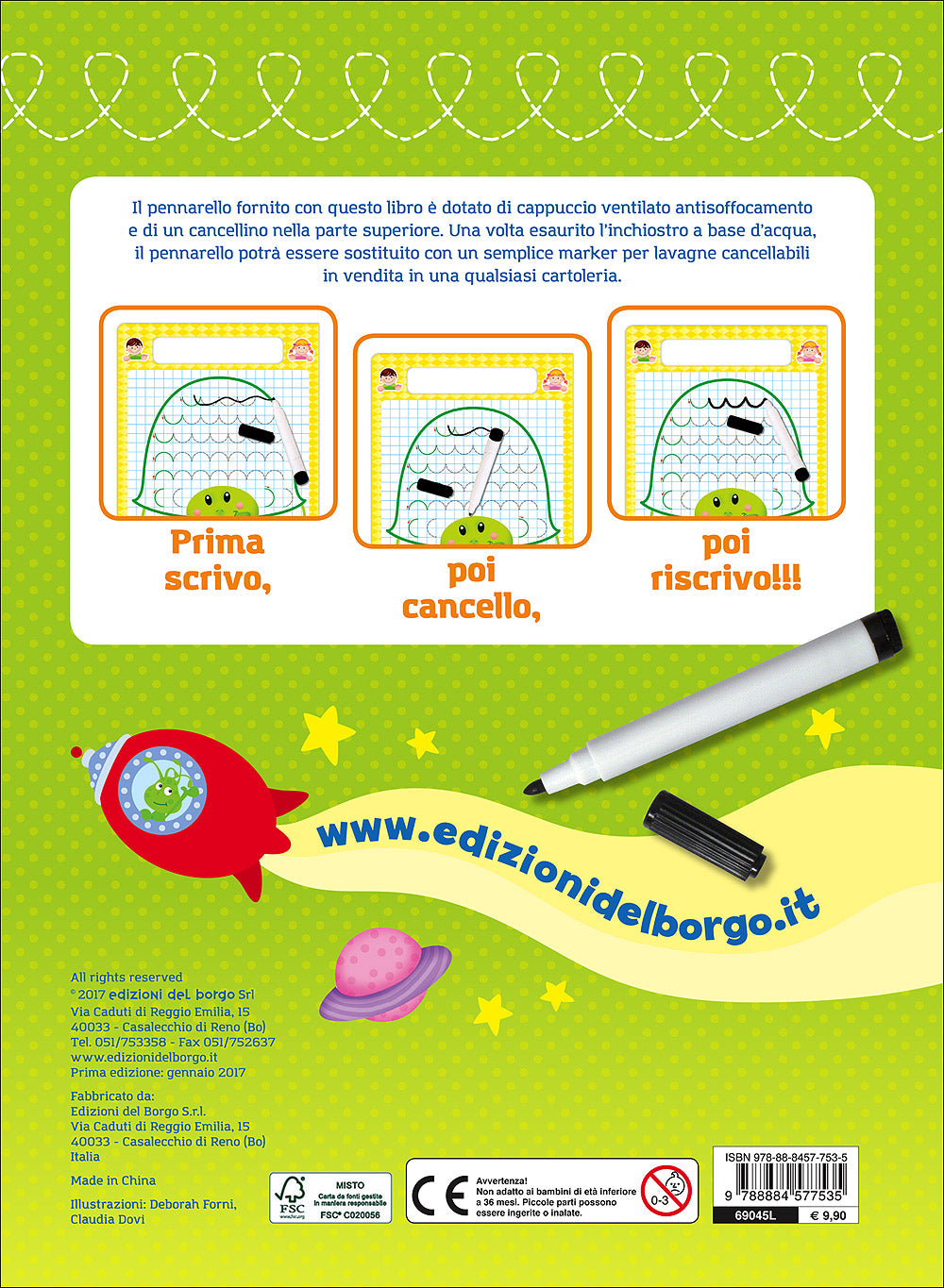 Imparo a scrivere con il libro lavagna - 4/6 anni. Scrivo, cancello, riscrivo - Con pennarello con inchiostro a base d'acqua