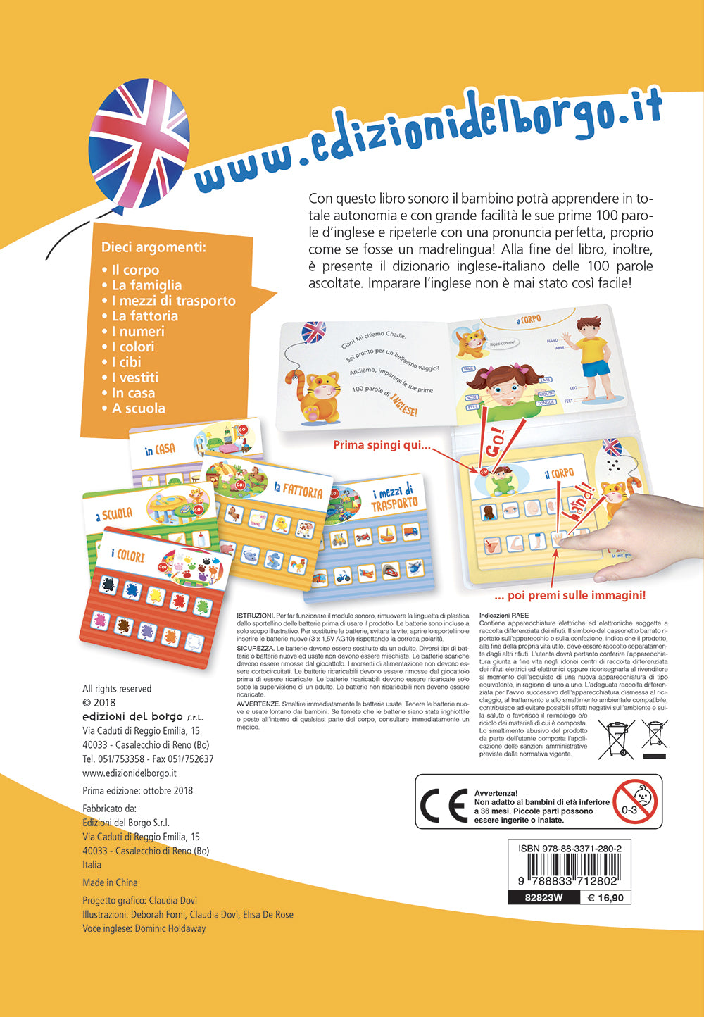 Con questo libro sonoro il bambino potrà apprendere in totale autonomia e con grande facilità le sue prime 100 parole d'inglese e ripeterle con una pronuncia perfetta, proprio come se fosse un madrelingua! Alla fine del libro, inoltre, è presente il dizionario inglese italiano delle 100 parole ascoltate. Imparare l'inglese non è mai stato così facile!