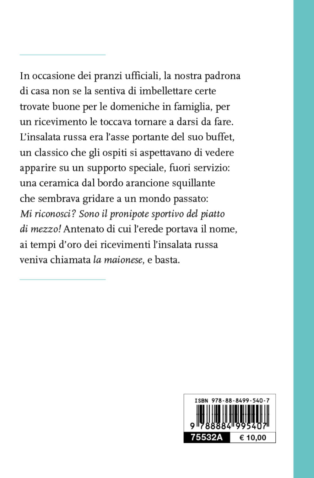 qui e là, dal piatto della padrona di casa, l’insalata russa o, per dirla
