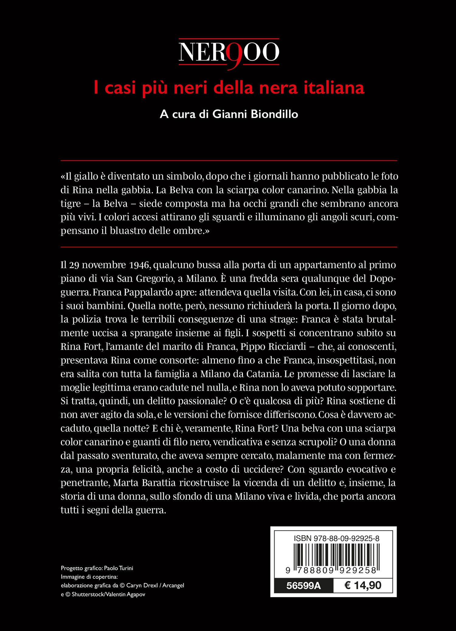 strage: Franca è stata brutalmente uccisa a sprangate insieme ai suoi figli. I sospetti si concentrano subito su Rina Fort, l’amante del marito di Franca, Pippo Ricciardi – che, ai conoscenti, presentava Rina come consorte: almeno fino a che Franca, insospettitasi, non era salita con tutta la famiglia a Milano da Catania. Le promesse di lasciare la moglie legittima erano cadute nel nulla, e Rina non lo aveva sopportato. Si tratta, quindi, un delitto passionale? O c’è qualcosa di più? Rina sostiene di non aver agito da sola, e le versioni che fornisce differiscono. Cosa è davvero accaduto, quella notte? E chi è, veramente, Rina Fort? Una belva con una sciarpa color canarino e guanti di filo nero, vendicativa e senza scrupoli? O una donna dal passato sventurato, che aveva cercato malamente, ma con fermezza, una propria errata felicità?
