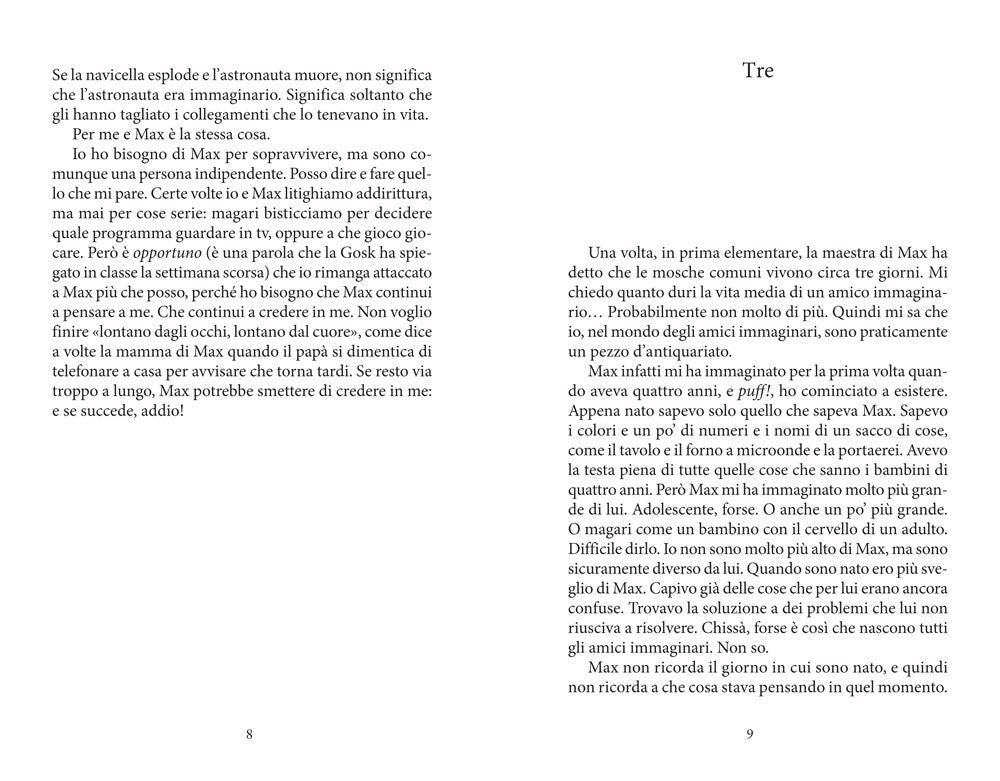 Per Max vivere è una faccenda piuttosto complicata: va in tilt se deve scegliere tra due colori, non sopporta il minimo cambio di programma, detesta essere toccato, persino da sua madre che vorrebbe abbracciarlo molto di più. Del resto ha nove anni ed è un bambino autistico. Per fortuna c'è Budo, il suo invisibile e meraviglioso amico immaginario che non lo abbandona mai e da molto vicino ci racconta la sua storia. Finché un giorno accade qualcosa di terribile: Budo vede Max uscire nel cortile della scuola e sparire nell'auto della signora Patterson, la maestra di sostegno. Lo chiama, gli ordina di fermarsi, lo rincorre, ma è tutto inutile. L'auto sfreccia via e per la prima volta Budo è solo. Da quel momento, di Max non si hanno più notizie. E quando a scuola arriva la polizia per interrogare gli insegnanti, Budo è l'unico a sapere con certezza che la signora Patterson non sta dicendo la verità. Ma nessuno al mondo può sentire le sue parole, nessuno, tranne il suo amico scomparso... Dov'è finito Max? Che cosa può fare Budo per risolvere un mistero più grande di lui e riaverlo con sé?