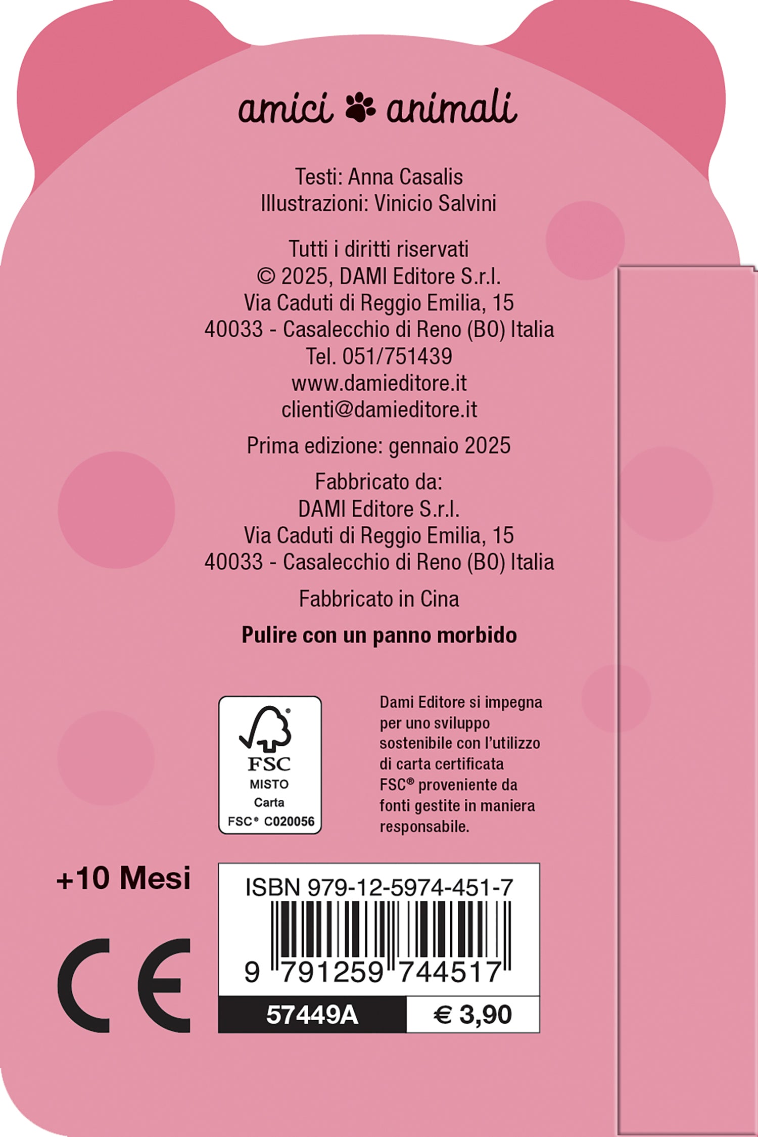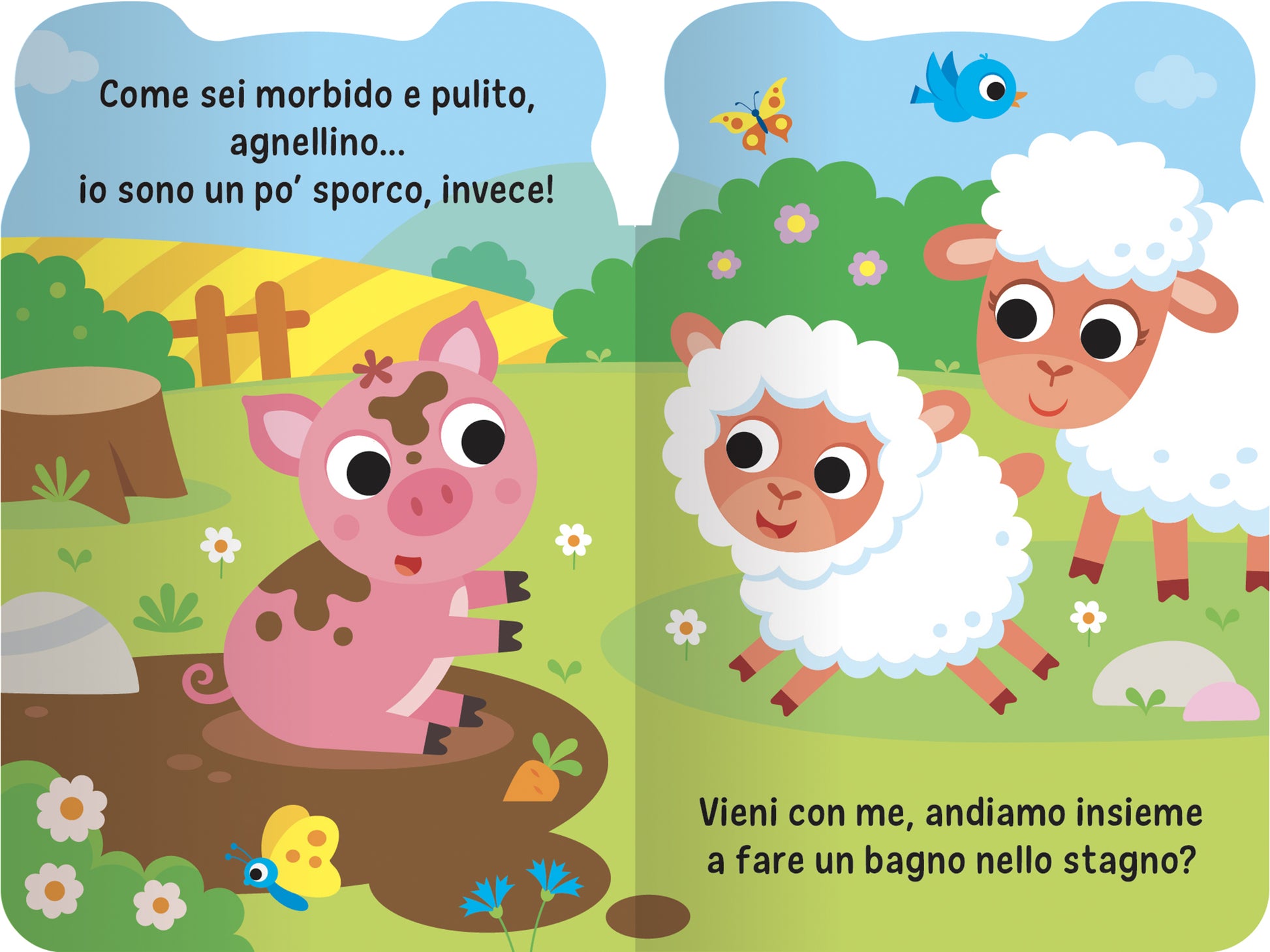 Un piccolo volume perfetto per bambini e bambine dai 10 mesi, con testi brevi e semplici, illustrazioni vivaci e pagine sagomate a forma di maialino. Un libro che è anche un dolcissimo compagno di giochi!