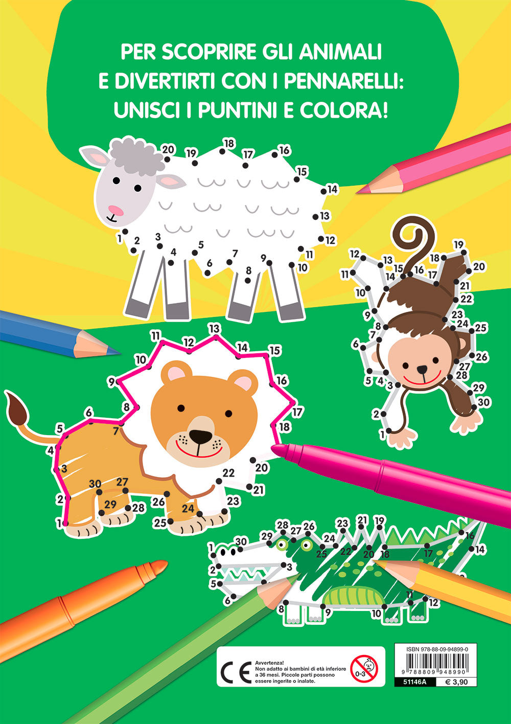 Dalla savana alla giungla, dal deserto ai poli... tanti animali da scoprire unendo i puntini e seguendo la sequenza numerata. I giochi sono divisi in tre livelli di difficoltà, dai più facili ai più difficili. Buon divertimento!
