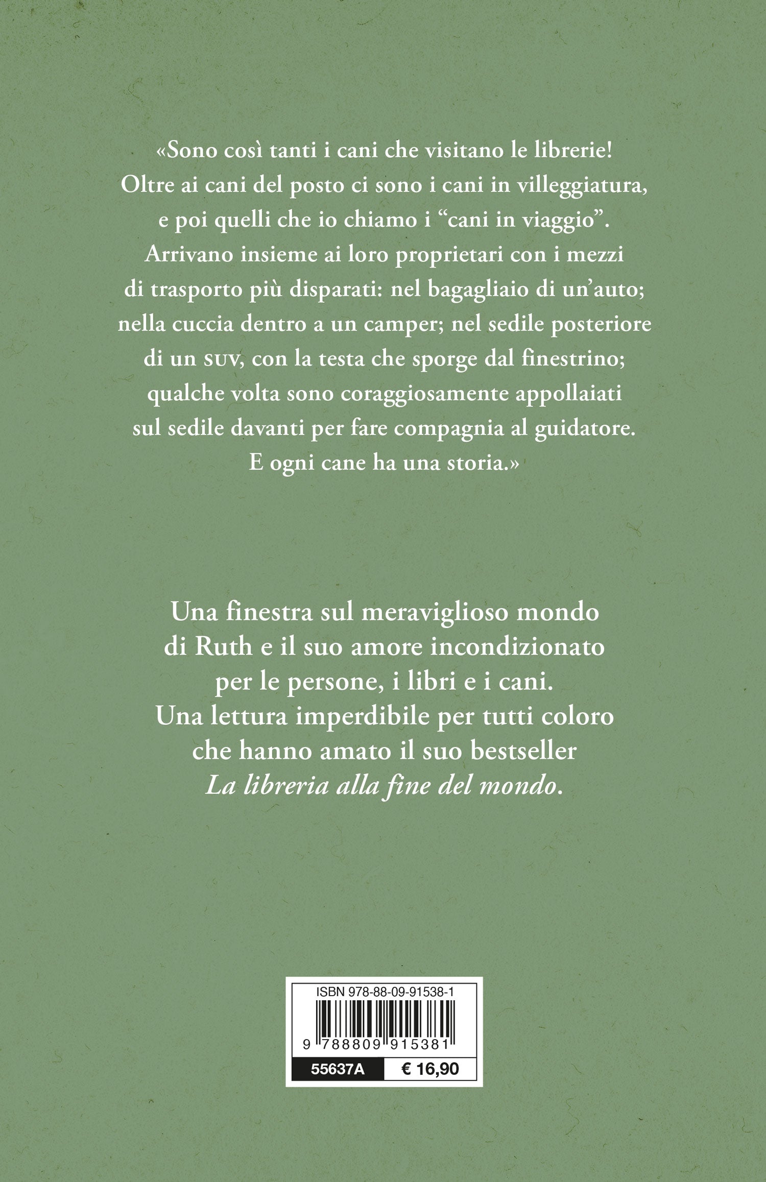 «I cani sono gentili, volenterosi, pazienti, lea- li, divertenti e molto più di questo. Colorano i nostri giorni. Oggi sono triste, oggi sono felice, oggi voglio solo il tuo amore. Mi auguro con tutto il cuore che nel leggere queste pagine vi divertirete quanto io mi sono divertita a scriverle». Ruth Shaw ci invita così a sgombrare il campo da un dubbio amletico: i migliori amici dell’uomo sono i cani o i libri? Molto spesso entrambe le opzioni sono valide e la combinazione dei due elementi è sorprendente. Lo dimostrano le storie della vivace libreria frequentata dai cani (e dai loro padroni) che amano quel piccolo angolo alla fine del mondo fatto di volumi sugli scaffali, di consigli letterari e della incredibile capacità di Ruth di ascoltare, comprendere, comunicare con ogni essere vivente.
