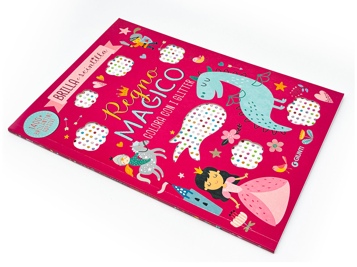 Un libro pieno di illustrazioni da colorare e decorare con tanti brillantini adesivi. Dai feroci draghi sputafuoco alle principesse con le loro splendenti corone, sbizzarrisciti a creare opere d’arte scintillanti!
