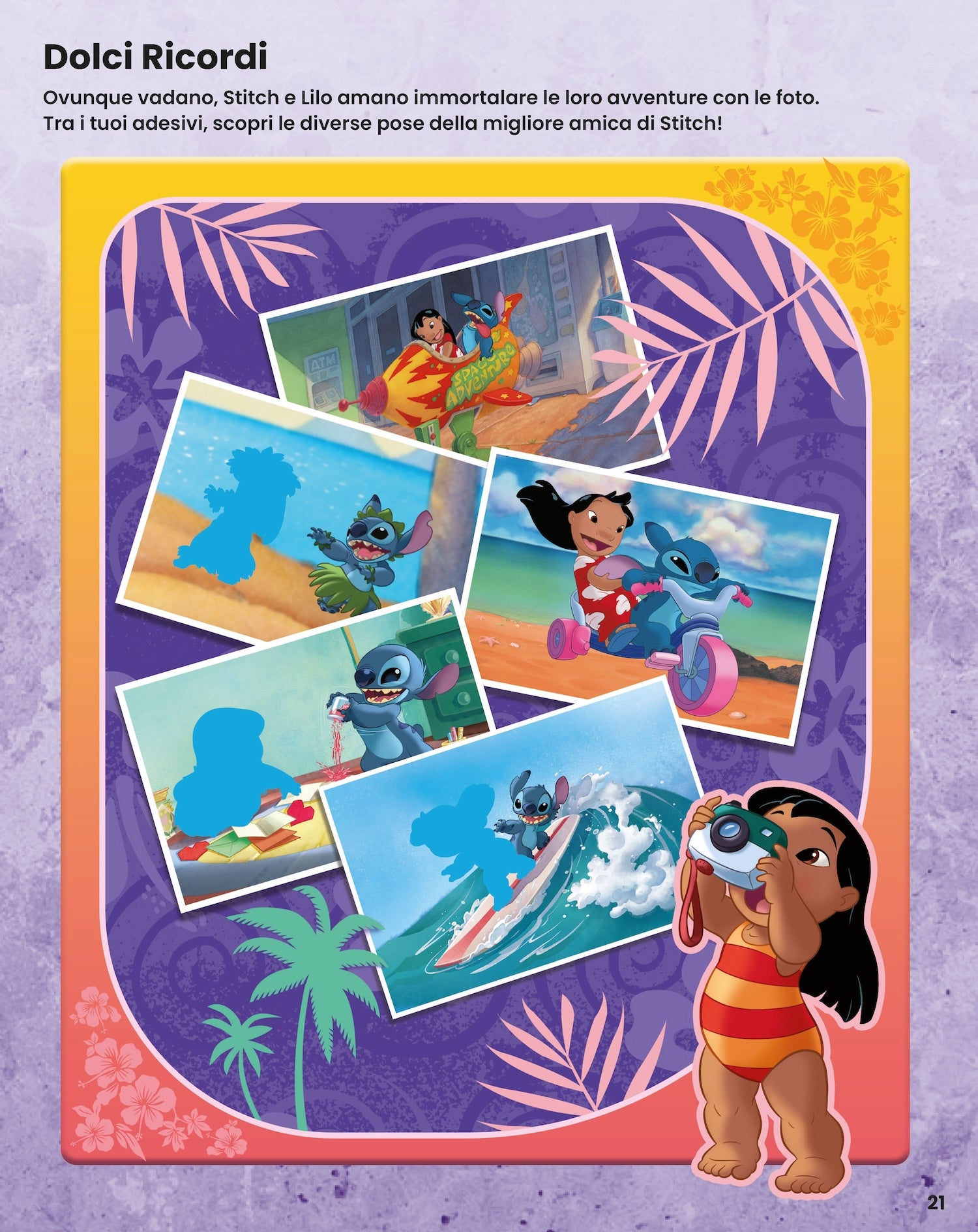 Un album attivo, dedicato all’amatissimo Stitch, di 48 pagine e 8 fogli di adesivi, con giochi educativi e attività da realizzare e completare con gli oltre 200 sticker. Un libro per stimolare la fantasia e favorire lo sviluppo della manualità giocando con forme e colori.