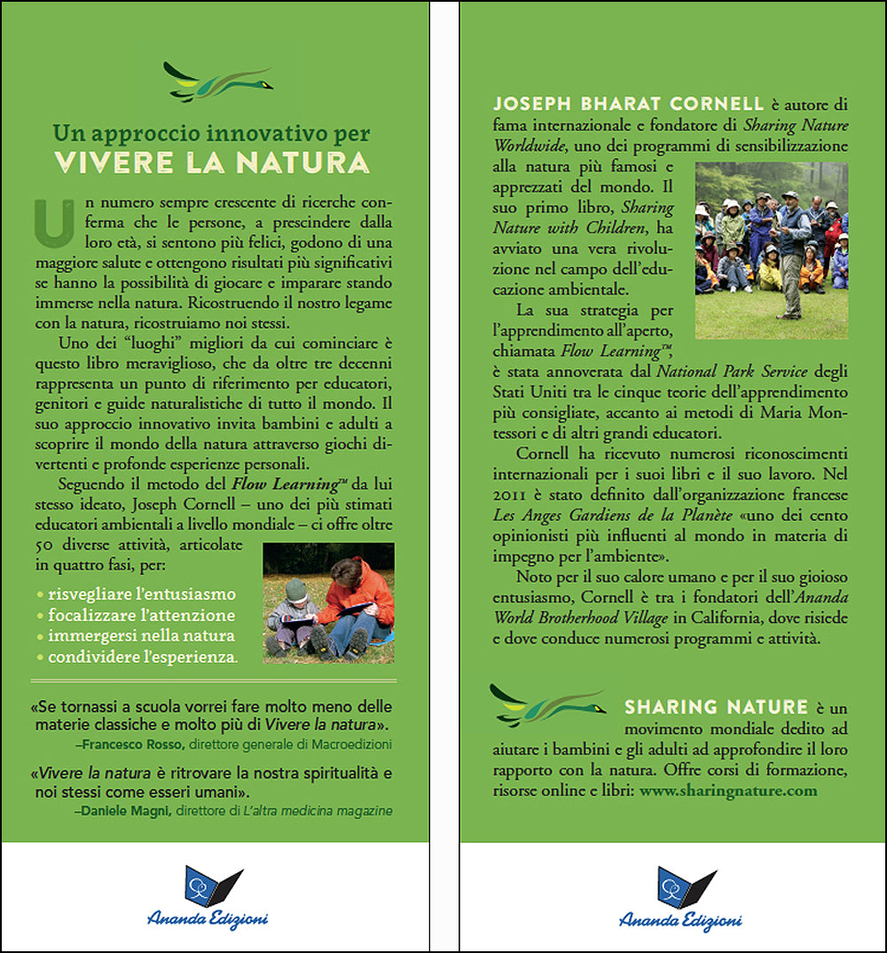 Questo libro - utilizzato da oltre trent'anni da educatori e guide naturalistiche in tutto il mondo - ha dato il via a una rivoluzione mondiale nel campo dell'educazione e ha aiutato milioni di adulti e bambini a sperimentare un rapporto più profondo e significativo con la natura. Questa nuova edizione, rivista e ampliata dall'autore, è una vera miniera di attività gioiose per conoscere l'ambiente naturale, con oltre 50 giochi per tutte le età spiegati in dettaglio e innumerevoli consigli pratici per raccontare storie e organizzare escursioni naturalistiche.